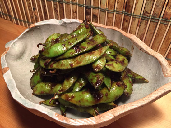 ②1に、はちみつを加え、よく混ざったら、えだまめを加え、ソースをからめる。